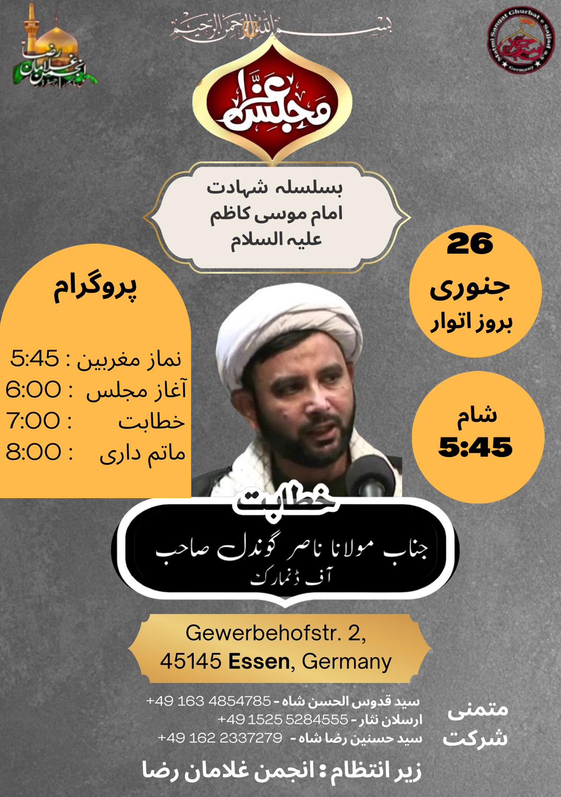 نماز مغربین: شام 5:45